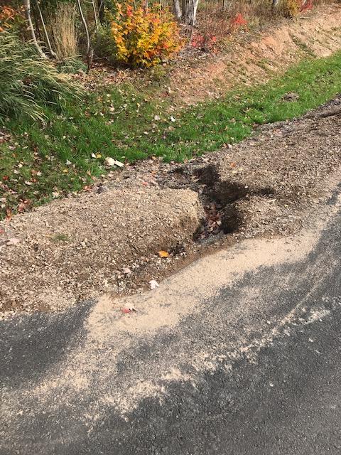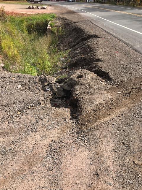 This is what happens to our infrastructure when we get little to no maintenance, the culvert under the trail is totally blocked with years of soft shoulder debris washing into the culvert. When asked to clear the culvert the county refused, as deemed too expensive and would be corrected when the road is repaved, this paving project has been taken off the books for the past 5 years now.