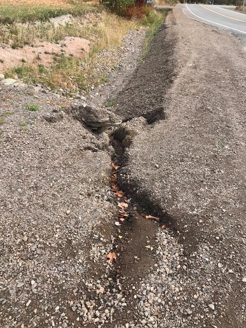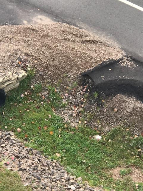 Unfortunately the engineers do not understand how the water moves off the road, we have had 2 rain events since the upgrade and the soft shoulder is being eroded away. See images below. Our fear is that when we have rain events that we are used to it will undermine the blacktop